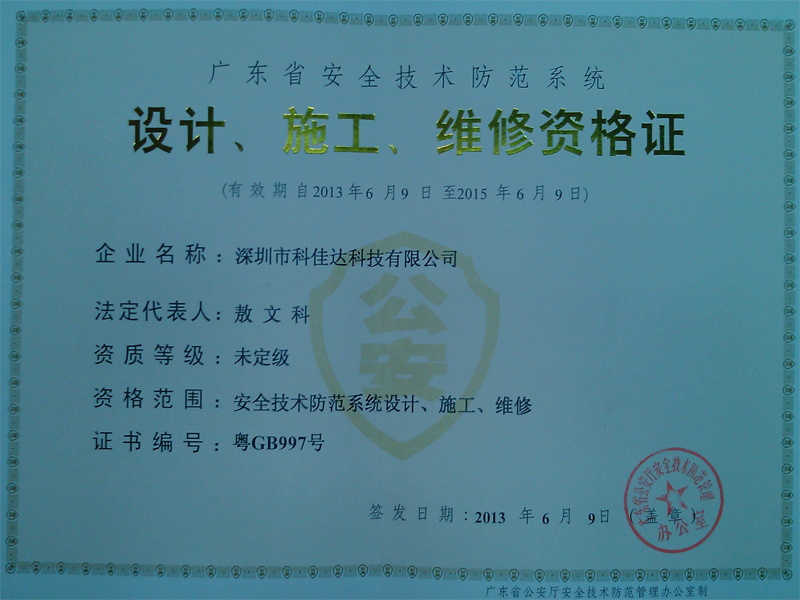 • 喜報!深圳市科佳達科技有限公司電子與智能化工程專業承...01/19